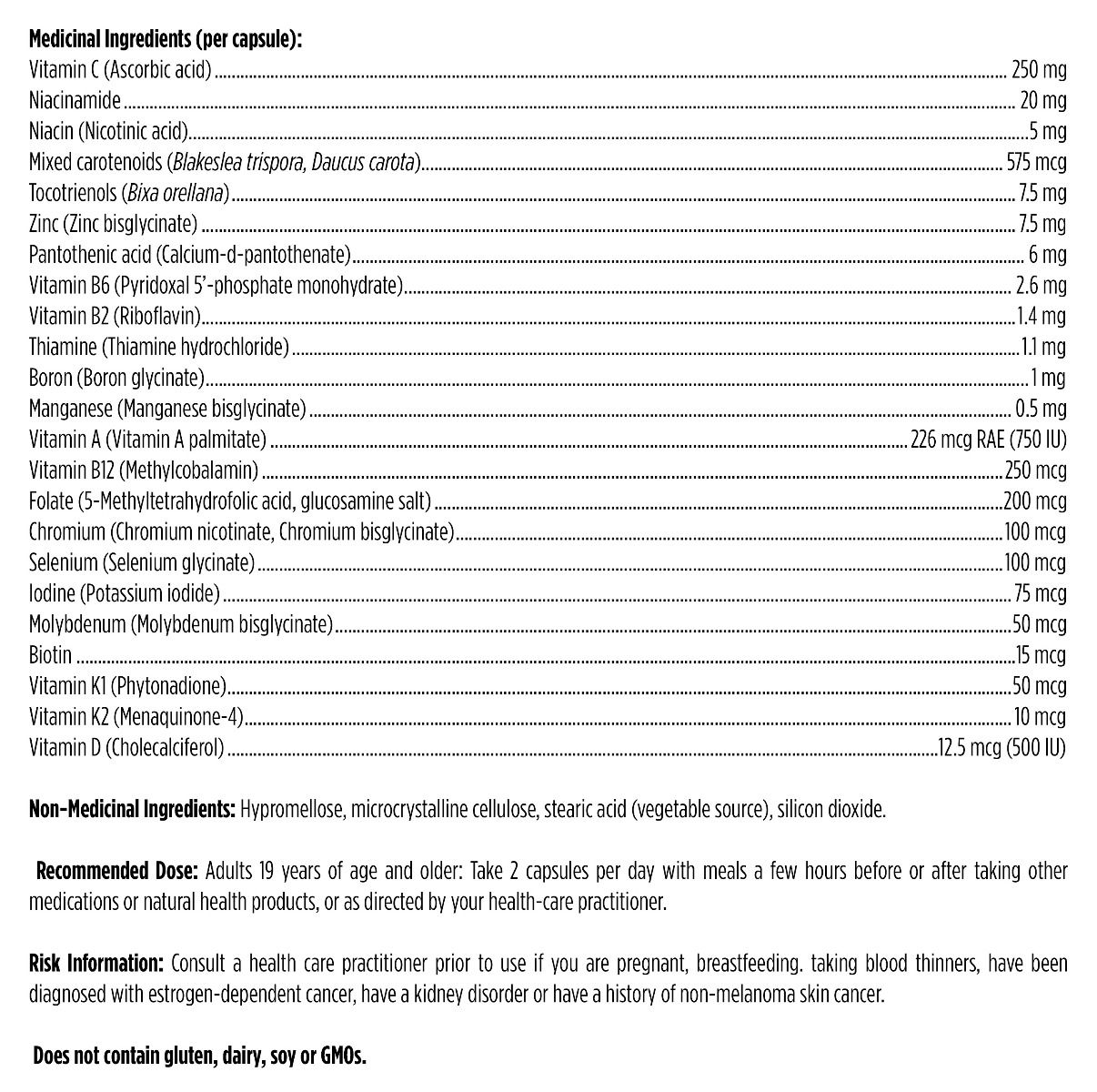 Twice Daily Multi™ contains optimal amounts of many nutrients not easily obtained in most diets. It uses higher quality ingredients than most multivitamins, including vitamin E as high gamma mixed-tocopherols, our proprietary NatureFolate™ blend of active isomer naturally-occurring folates, and true amino acid chelate minerals for optimal tolerance and absorption. These exceptional ingredients are combined in an up-to- date, science-based formulation to create a truly superior multi.